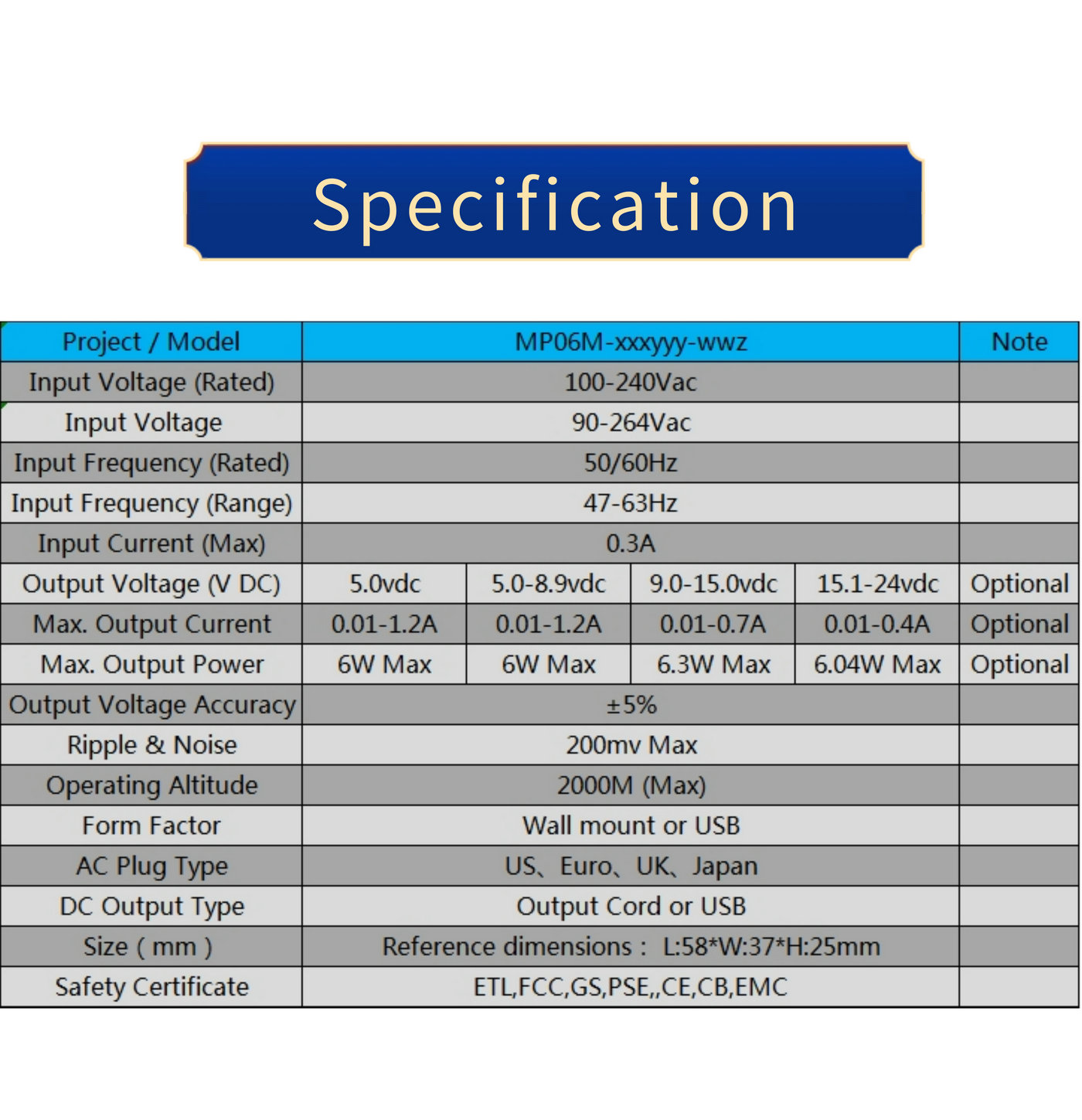 Model :MP06M-xxxyyy-wwz