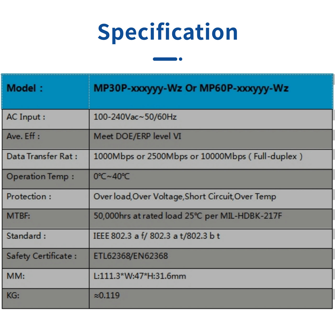 | Standard: | IEEE 802.3 a f/ 802.3 a t/802.3 b t |